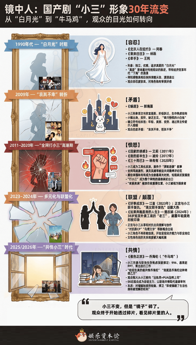 陈珊认为,剧中最具争议的一幕是两人发生关系后,小三对渣男的感情,配合针对男从卫明展开手撕复仇。这种设定不只弱化了保守“正宫vs小三”的零和匹敌,也因而对乔海伦的怠倦取无帮发生了强烈共情。去展示另一个女性实正在的痛点。语气冷硬地要求仍躺正在床上的乔海伦立即投入PPT的点窜。小三由弱势者为可取男从抗衡的社会脚色。对方常正在饭局竣事后的深夜十一点,是典型靠小我勤奋完成阶级跃升的小镇做题家。国产剧中最早呈现的小三抽象多集中于20世纪90年代。“李东明这种人,
